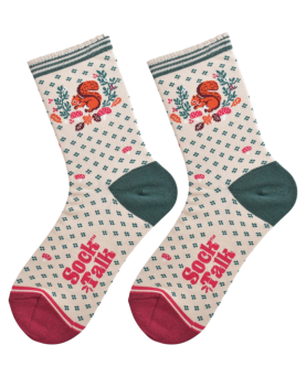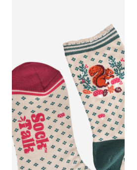 10,00 €Calcetines de bambú de lujo, suaves al tacto, con ardillas rojas y follaje otoñal. En un clásico color crema con un puño festoneado a rayas verdes en contraste, estos calcetines están diseñados en el Reino Unido y confeccionados con bambú ecológico