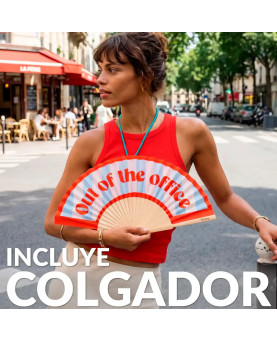Este abanico original incluye un práctico colgador para que puedas tenerlo siempre a mano y que no se te pierda ni se te olvide. ¡Cuélgatelo y olvídate de rebuscarlo en tu bolso o mochila cuando necesites abanicarte!