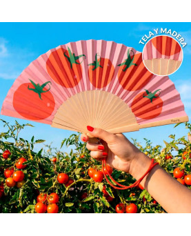 8,99 €Si el verano para ti sabe a huerta, a gazpacho fresquito y a tomate con sal, este abanico de estampado de tomates es para ti. Es un abanico rojo, divertido y con un toque mediterráneo que llenará tus looks de color y te hará llamar la atención allá donde vayas.
