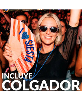 ABANICO I LOVE SIESTA LETRAS PURPURINA