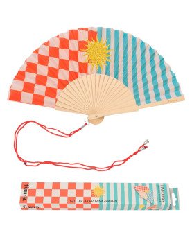 8,99 €Este abanico con estampado de rayas, cuadros y un brillante sol de purpurina es ideal para darle a tus looks veraniegos un toque de alegría y color que te hará llamar la atención allá donde vayas. Además, incluye un práctico colgador para que puedas tenerlo siempre a mano y que no se te pierda ni se te olvide. ¡Cuélgatelo y olvídate de rebuscarlo en tu bolso o mochila cuando necesites abanicarte!