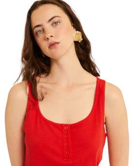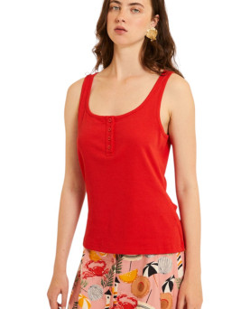 34,00 €Top en color rojo en tejido de canalé. Tirante lo suficientemente ancho para poder llevar sujetador sin que se vean los tirantes. Escote redondo bajo en pecho y cerrado en la espalda. Detalles de botones en el frente.