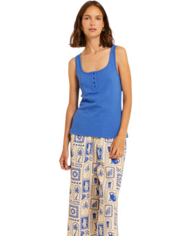 34,00 €Top en color azul en tejido de canalé. Tirante lo suficientemente ancho para poder llevar sujetador sin que se vean los tirantes. Escote redondo bajo en pecho y cerrado en la espalda. Detalles de botones en el frente.