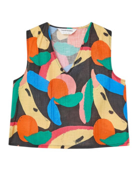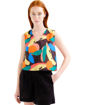 27,95 €Top en color negro con estampado de frutas multicolor en colores brillantes. Sin mangas con escote a pico. Aberturas en los laterales. Corte recto amplio. La modelo mide 177 cm y lleva la talla S.