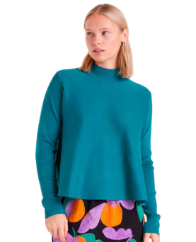 20,00 € 39,95 €Jersey de punto con corte envasé de color turquesa . Con cuello perkins redondo y manga larga. La modelo mide 177 cm y lleva la talla S.
