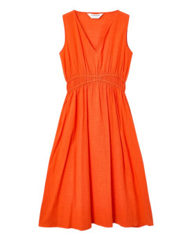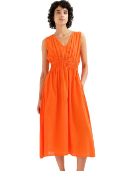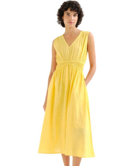 49,95 €Vestido midi de tejido 100% algodón de color amarillo. Escote pico y sin mangas. Detalle de ajuste elástico en cintura. Forro interior. La modelo mide 175 cm y lleva la talla S.