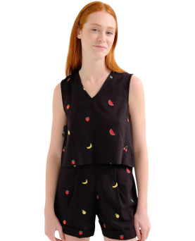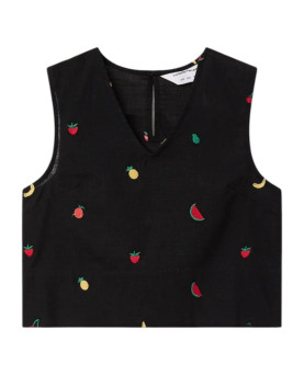 TOP NEGRO BORDADO ENSALADA FRUTAS