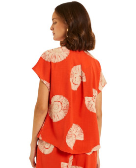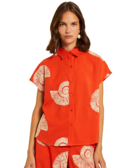 59,90 €Camisa en color coral con bonitos caracoles bordados. Manga corta con cuello camisero. Corte recto.