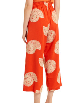 75,00 €Pantalón culotte en color coral con bordado de caracolas. Cintura fija en la parte delantera y con goma en la parte trasera. Pata ancha desde arriba.