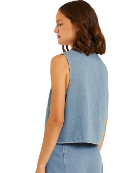 59,90 €Chaleco denim confeccionado en tencel, con mucha caída y fresco para el verano. Corte recto sin ajustar. Largo por la cintura