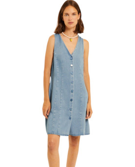 69,90 €Vestido denim confeccionado en tencel, un tejido muy fresco perfecto para el verano. Corte skate lo que hace que la falda tenga un bonito vuelo. Largo por encima de la rodilla