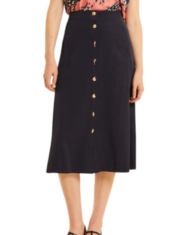 59,90 €Falda midi abotonada con detalle de botones joya con motivos del mar. Goma en la parte trasera de la cintura. Con ligero vuelo para no entallar en la cadera