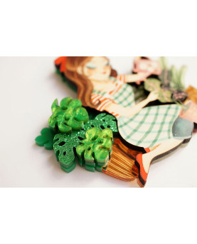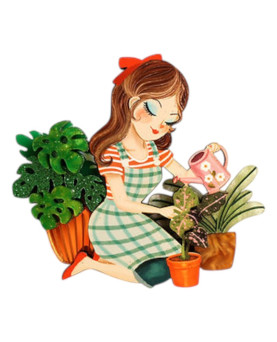 42,00 €Broche ilustrado de una chica cuidando su pequeño jardín interior. Una pieza llena de color y detalles. Especial, ligero y perfecto para acompañarte con un toque creativo y natural. Un poco de agua, un poco de luz… y todo florece.