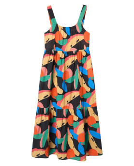 54,95 €Vestido largo en color negro con estampado de rutas en colores brillantes. Corte babydoll a media cintura y falda con vuelo sin aportar volumen. Tirante ancho. Escote cuadrado en pecho y espalda. La modelo mide 177 cm y lleva la talla S.