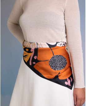 Precioso pañuelo con flores en tonos marrones perfecto para completar cualquier look. 70*70