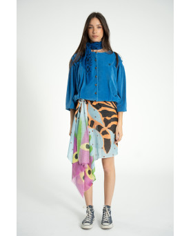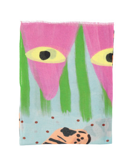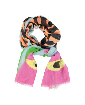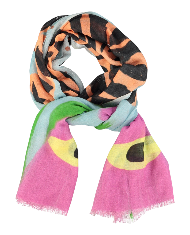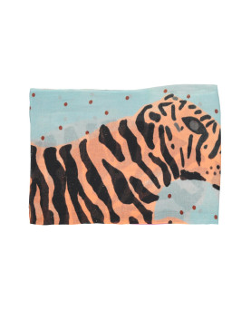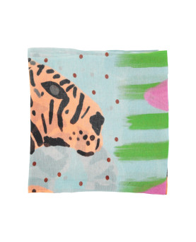 Pañuelo multicolor con estampado de tigre multicolor y ribetes deshilachados.