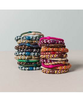 Los coleteros/pulseras Kknekki están reconocido como uno de los mejores hairties del mundo. La técnica de tejido única los hace extremadamente suaves para cualquier tipo de cabello y no se destiñen, deshilachan ni aflojan, incluso cuando se usan en agua salada. También son aptos para alérgicos.