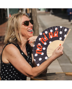 Con su mensaje “no ni ná”, este abanico flamenco no deja lugar a dudas: llevas el salero y el arte por bandera. Además, el abanico de lunares en blanco y negro le dará un toque flamenco a tus looks. ¡Irás derrochando duende y frescura allá donde vayas!