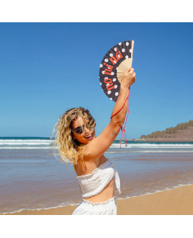 Además, incluye un práctico colgador para que lo lleves siempre contigo sin preocupaciones. ¡Cuélgatelo, mantén las manos libres para bailar y olvídate de rebuscarlo en tu bolso o mochila cuando necesites abanicarte!