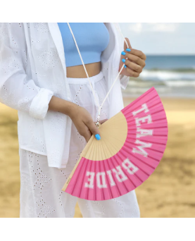 Con el abanico rosa “team bride” dejarás claro de qué lado estás: del amor, la fiesta y, por supuesto, de la novia. Con su mensaje es ideal para despedidas, como abanico para boda o para cualquier otro plan donde se celebre a lo grande. ¡Porque no solo te mantiene fresca, sino que también te dará ese toque chic y festivo que toda bride squad necesita!