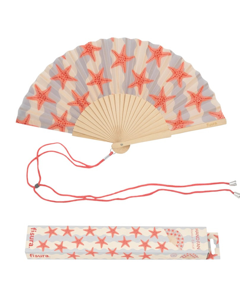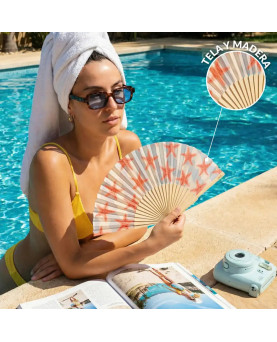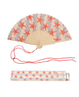 Deja claro que adoras el mar, la arena en los pies y los largos paseos por la orilla con este abanico con estampado de estrellas de mar. ¡Le darás a tus looks veraniegos un toque marinero y divertido que te hará llamar la atención allá donde vayas!