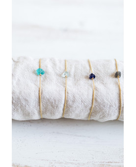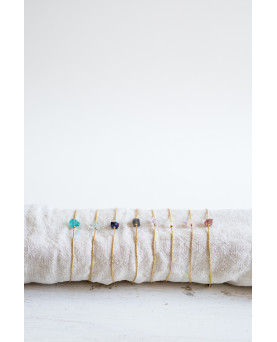Para su diseño hemos empleado pequeños fragmentos de mineral en bruto de aspecto rústico que contrastan con la delicadeza de la cadenita en la que van engarzados.