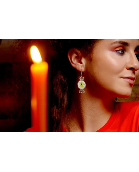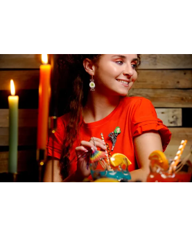 ¡Ideales para lucir en Halloween! Realizados en metacrilato con detalles pintados a mano y madera ilustrada con acabado brillante. Toda fornitura metálica en contacto con la oreja tiene un fino baño de oro. Pendientes de 5 x 2 cm, con un peso total de apenas 4 gr. cada uno ¡Super cómodos por su ligereza! Diseño original de LaliBlue. Elaborado por completo en España.