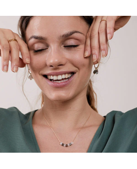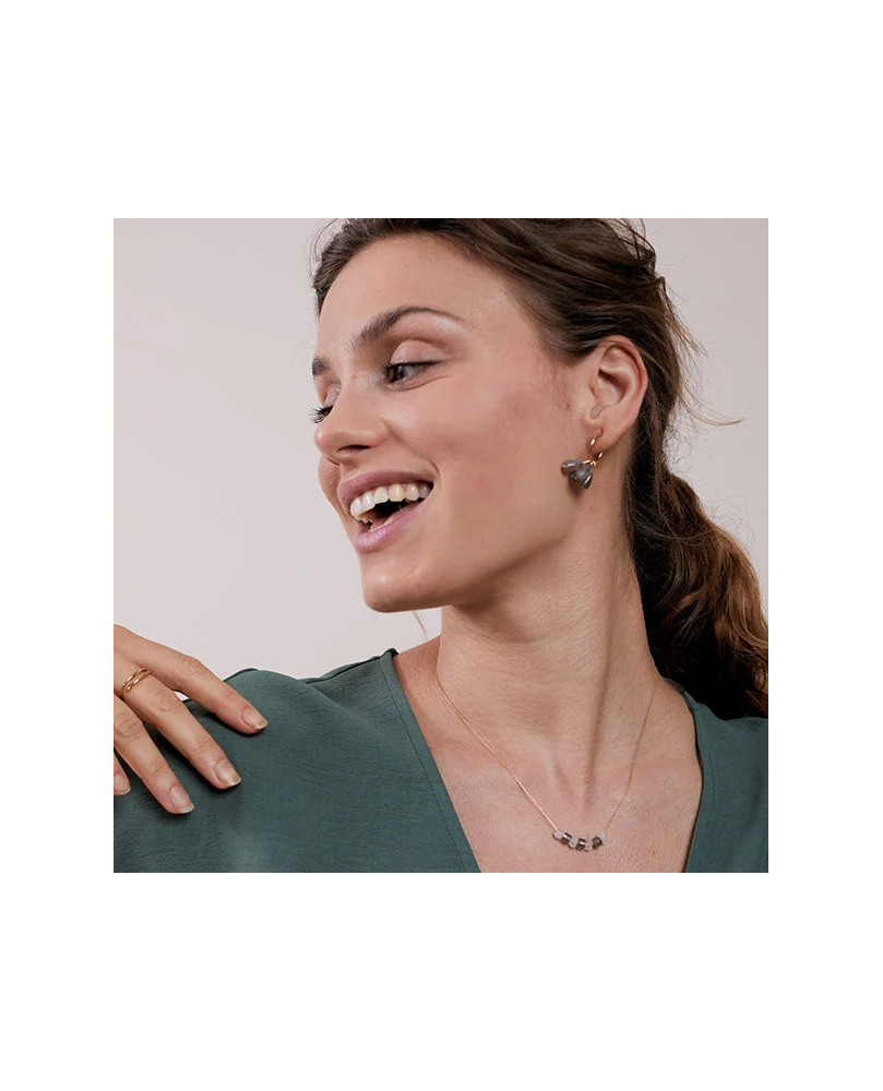 Los pendientes Vega están formados por un Aro Fino S y 4 cuentas en forma de lágrima de Labradorita (gris). Puedes quitarlas del aro o ponerlas depende de lo que te apetezca ese día, pero el pendiente tiene muchas opciones.