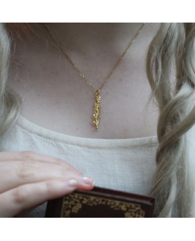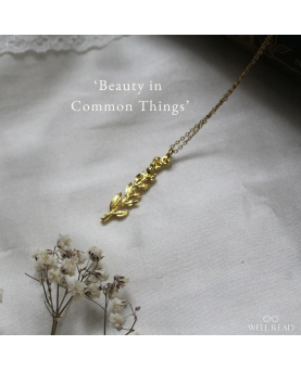 Presentamos nuestro colgante dorado de lavanda "La belleza de las cosas comunes", un cautivador homenaje a la elegancia de la naturaleza. Este exquisito colgante presenta un tallo de lavanda dorado elaborado meticulosamente.