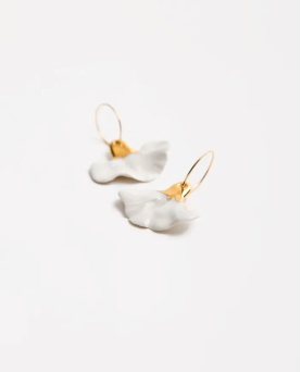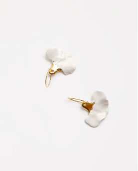 Aros chapados en oro. Pieza porcelana modelada a mano, esmaltada y cocida a 1250 grados. Lustrada en oro.