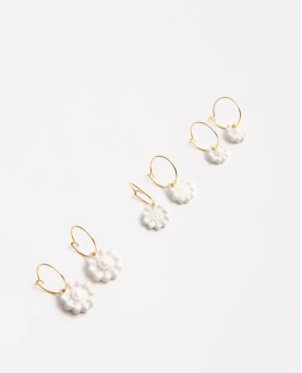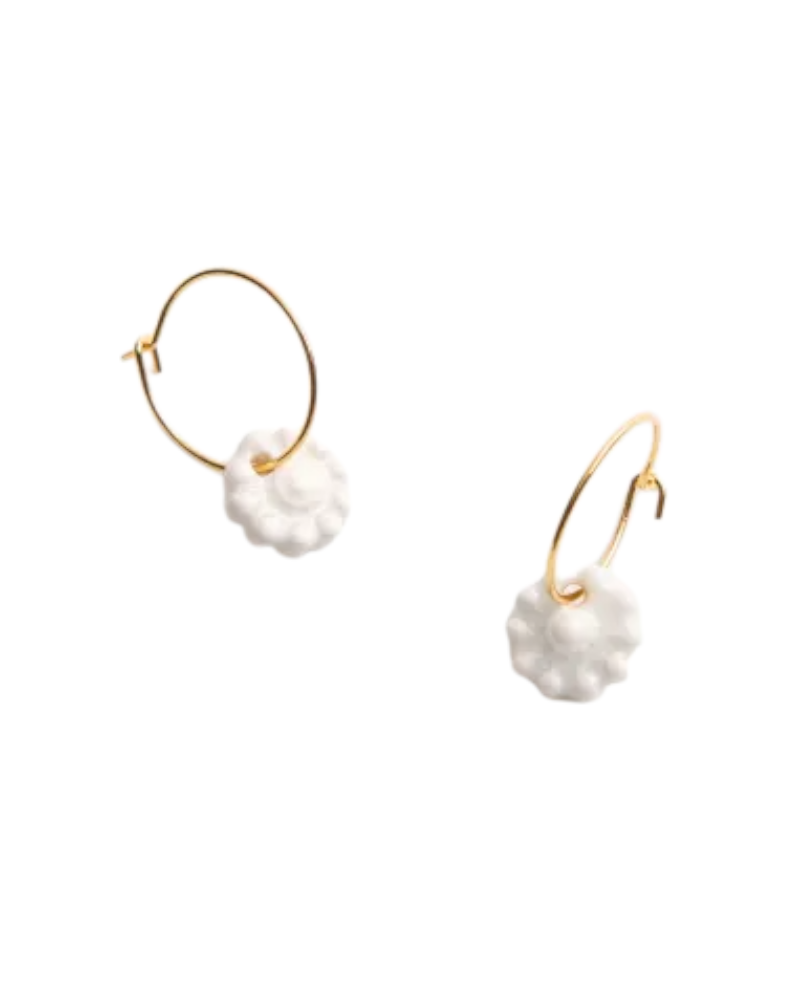 Pendientes aro de latón chapado en oro con pieza botón charro de porcelana modelado a mano, esmaltado y cocido a 1250 grados. Diámetro de la pieza cerámica: Pequeño : 1,2 cm.