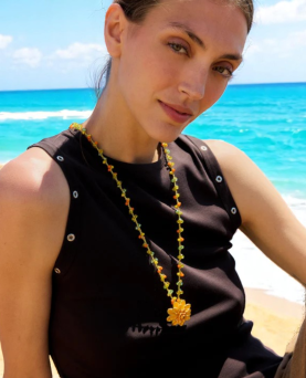 Puede haber pequeñas variaciones en la longitud o en la pintura ya que cada collar está hecho a mano. Pequeñas imperfecciones hacen que cada uno sea perfecto y único.