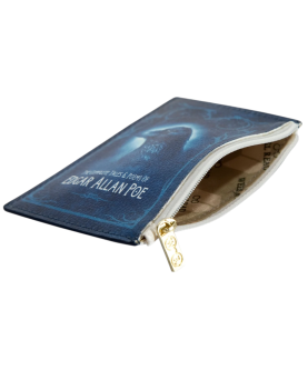 Este monedero de tamaño práctico presenta la colección atemporal de Cuentos y Poemas Completos de Edgar Allan Poe. Un llamativo cuervo sobre un fondo azul oscuro adorna el frente del monedero, hecho con cuero vegano. La parte trasera del monedero también está decorada con la impactante cita: ‘Oscuridad allí y nada más’. Perfecto para guardar tarjetas y efectivo, celebre a uno de los héroes de la literatura gótica con este diseño duradero.