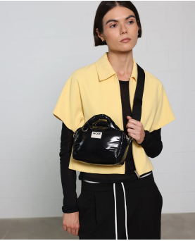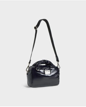 El bolso bowling Nuit, confeccionado con tejidos 100 % reciclados, está diseñado para llevar tu teléfono, cartera y otros objetos esenciales con un acabado brillante. Cuenta con una superficie repelente al agua, dos asas superiores acolchadas, una correa cruzada ajustable y desmontable, un compartimento principal con cremallera y un bolsillo interior para mantener todo en su lugar.