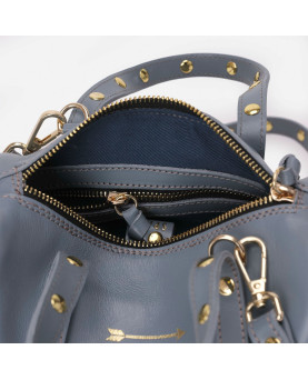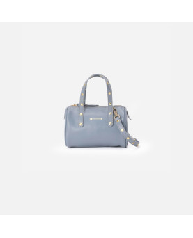 Bolso mediando estilo bowling de piel con tachuelas doradas. El Chunky es un clásico renovado. Su diseño compacto, con mucha capacidad, lo convierte en el aliado perfecto para el día a día, aportando un aire especial a cualquier look. Con asas cortas fijas para llevarlo en la mano y un asa larga para poder cruzarlo cómodamente. Con cierre de cremallera y un bolsillo interior que te ayudará a mantener todo organizado y a mano.