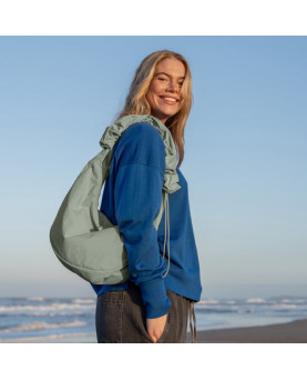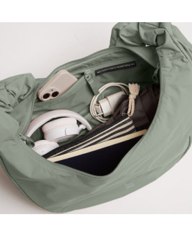 Tu milagro espacial de 11 litros con material RE:NYNET® repelente al agua: se puede usar como bolso cruzado o bolso de hombro gracias al versátil diseño con volantes.