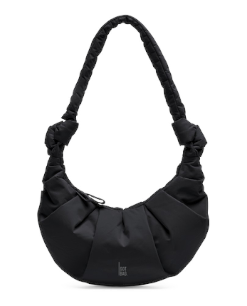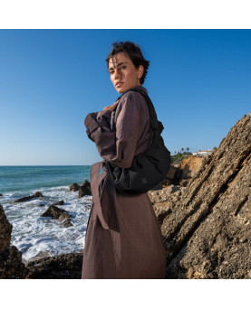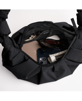 Bolsillo interior con cremallera Detalle de nudo en la correa del hombro Nuevo e innovador sistema de correas Correa de hombro ajustable de 63 a 106 cm