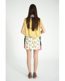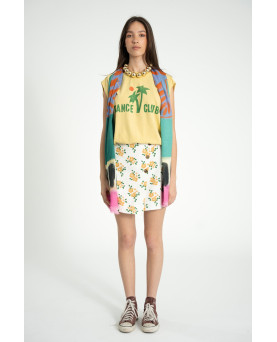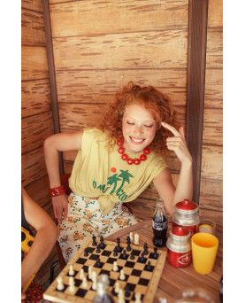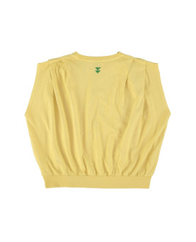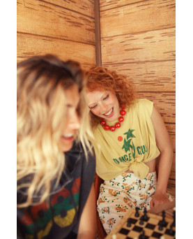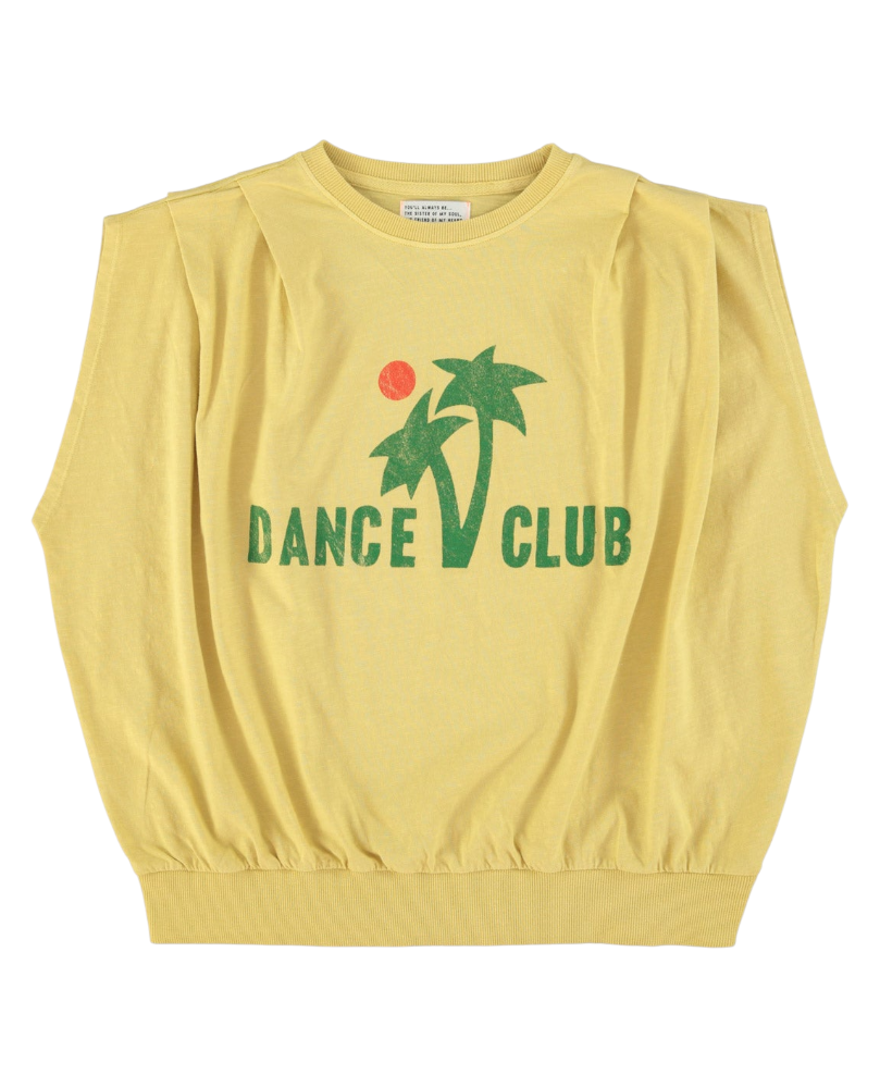 Camiseta sin mangas con detalles plisados en la parte delantera. Bajos acanalados. Estampado frontal y pequeño logo estampado en el cuello