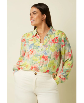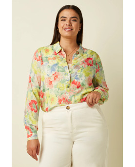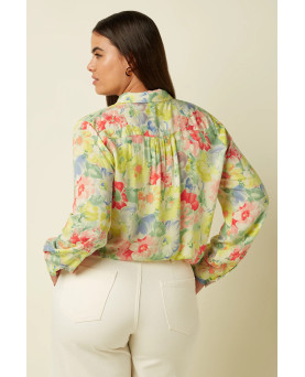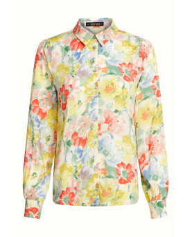 Preciosa camisa en flores con un aire vintage en colores pastel. El tejido es viscosa y le confiere una agradable textura además de caída. Perfecta para la primavera y el verano. Corte amplio