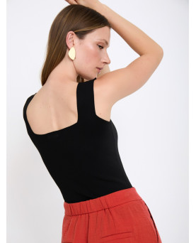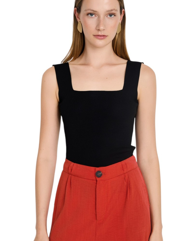 Top de punto confeccionado con hilo técnico mezcla de viscosa. Escote cuadrado y tirante ancho. Fitting ligeramente ajustado. Esta prenda está diseñada para acompañarte en tu día a día con diseños versátiles y atemporales.