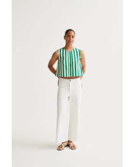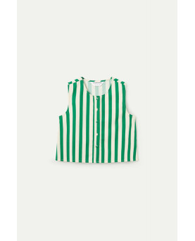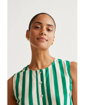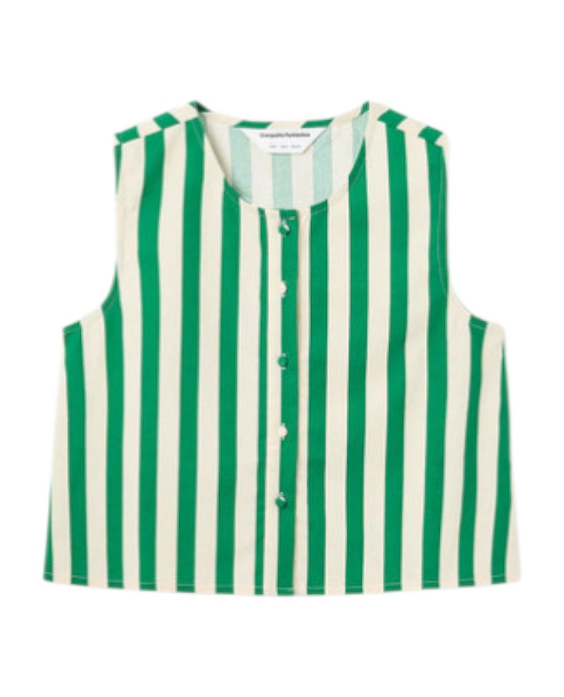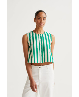 Top de tejido 100% algodón con estampado bamboo green. Cuello redondo y sin mangas. Cierre frontal con botones forrados. La modelo mide 173 cm y lleva la talla S.