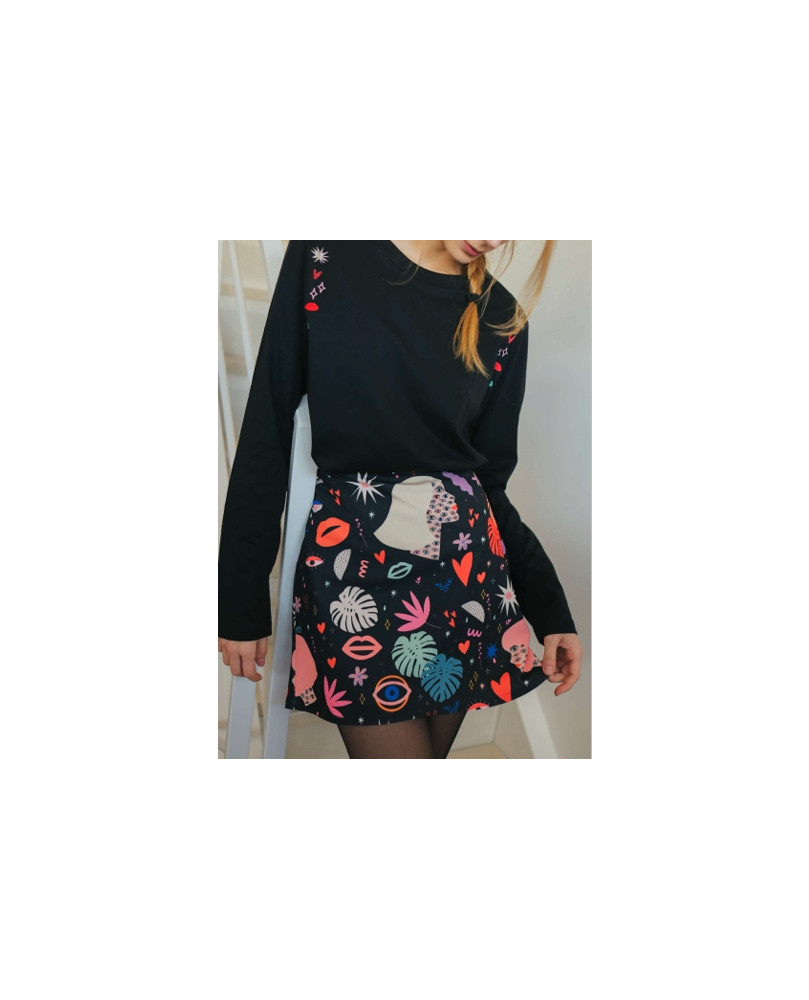 Ideal para looks de noche o casual chic, puedes combinarlo con nuestra camiseta hombreras o con nuestra sudadera ojos :)