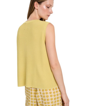 Pantalón palazzo de tejido ligero con mezcla de algodón. Estampado de topos irregulares. Tiro medio con detalle de pliegues frontales. cierre lateral con cremallera invisible y elástico en la espalda de la cinturilla. Pernera amplia. Dispone de camisa a conjunto, se vende por separado.