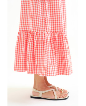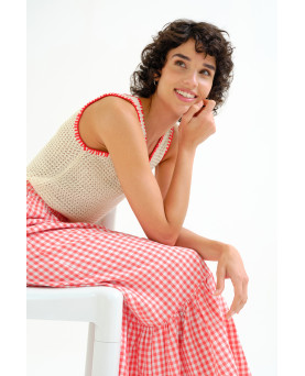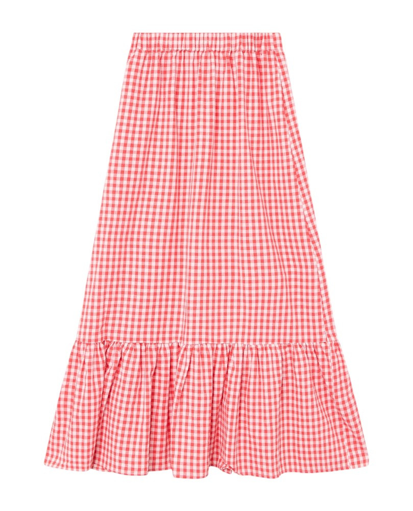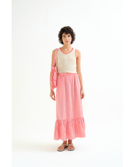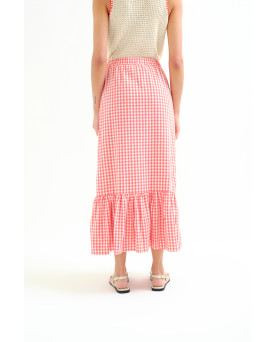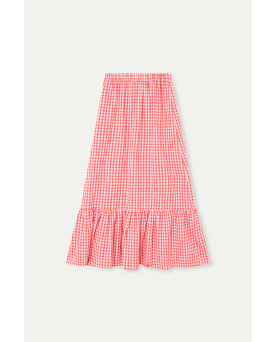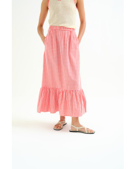 Falda larga de tejido ligero en cuadros vichy. Detalle de volante. Goma en la cintura. La modelo mide 175 cm y lleva la talla S.