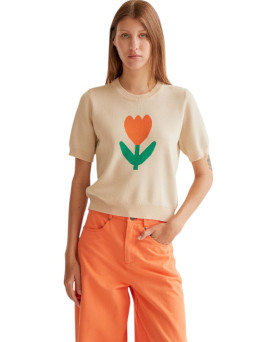 Su silueta relajada y su tejido suave lo convierten en una prenda perfecta para el día a día: cómoda, fácil de combinar y con ese aire desenfadado que aporta luz a cualquier look.