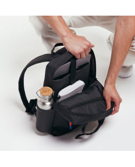 Compacta y de excelente diseño, con bolsillos exteriores elásticos y 11 L de espacio de almacenamiento. Fabricada con plástico reciclado Ocean Impact.