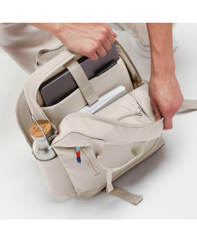 Compacta y de excelente diseño, con bolsillos exteriores elásticos y 11 L de espacio de almacenamiento. Fabricada con plástico reciclado Ocean Impact.