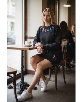Ultima falda en talla XL estilo chándal . Algodón orgánico, color negro con bolsillos y cintura de goma ajustable. De talle de bocas en glitter. Cómoda y chic, perfecta para primavera y entretiempo. Ahora rebajada.