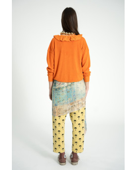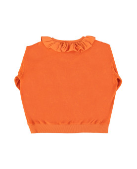 Sudadera de algodón orgánico de rizo con cuello Peter Pan de punto. Dobladillos gofrados. Estampado floral. Color naranja