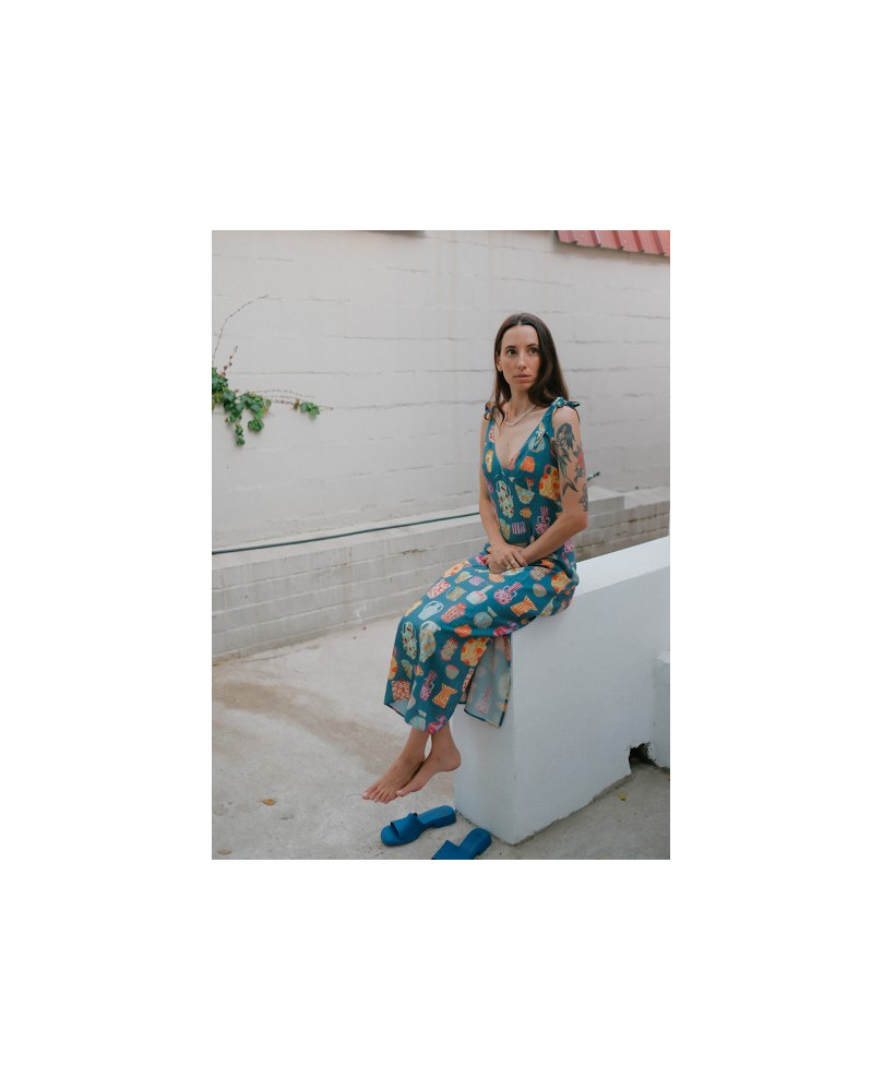 Su estampado colorido de inspiración mediterránea añade personalidad a la prenda, convirtiéndola en una opción versátil tanto para looks de día como para ocasiones más especiales. Perfecto para llevar con sandalias planas o elevar con accesorios, es ese vestido fácil que resuelve cualquier plan de verano.